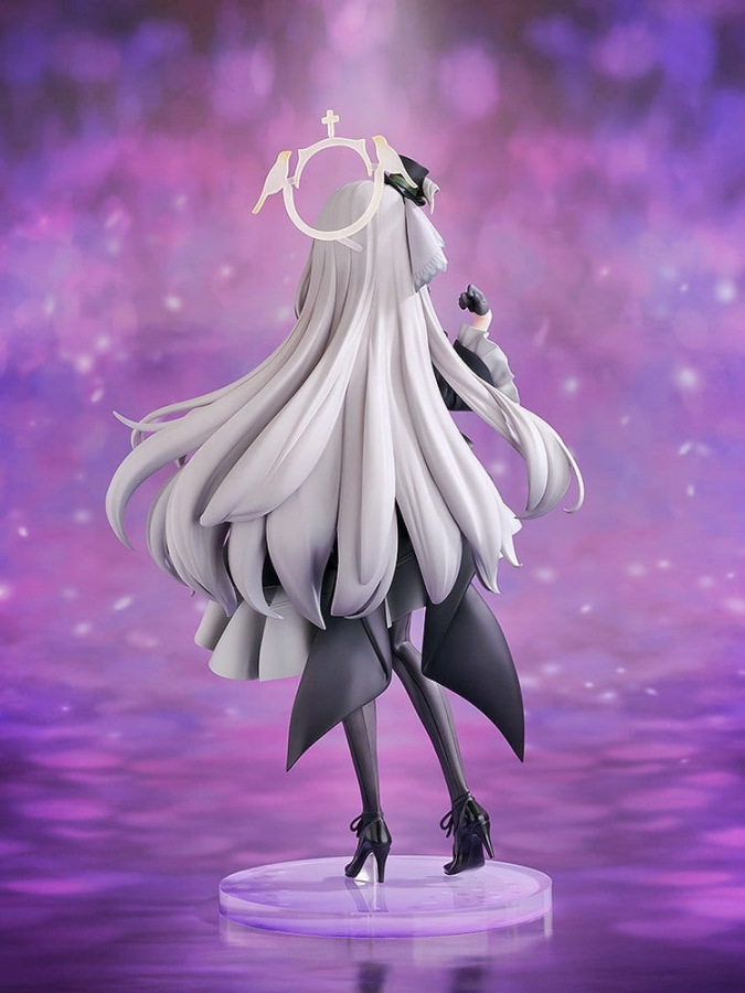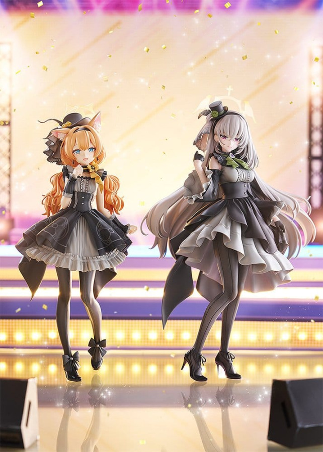 From the popular game "Blue Archive" comes a scale figure of Sakurako, a member of Trinity General School's Sisterhood, in her pop idol outfit! The figure features the member of the idol group "Antique Seraphim", performing on stage in a special outfit. Her chic monochrome outfit has been carefully recreated with attention to the soft texture of fabric, including the skirt’s gracefully flowing drapes. Decorations such as the frills and mini hat have also been meticulously sculpted down to the smallest details. Her gentle, intelligent charm is expressed through her bright smile, while her softly flowing long hair adds an extra touch of elegance. Be sure to enjoy this special moment with Sakurako as she shines on stage.