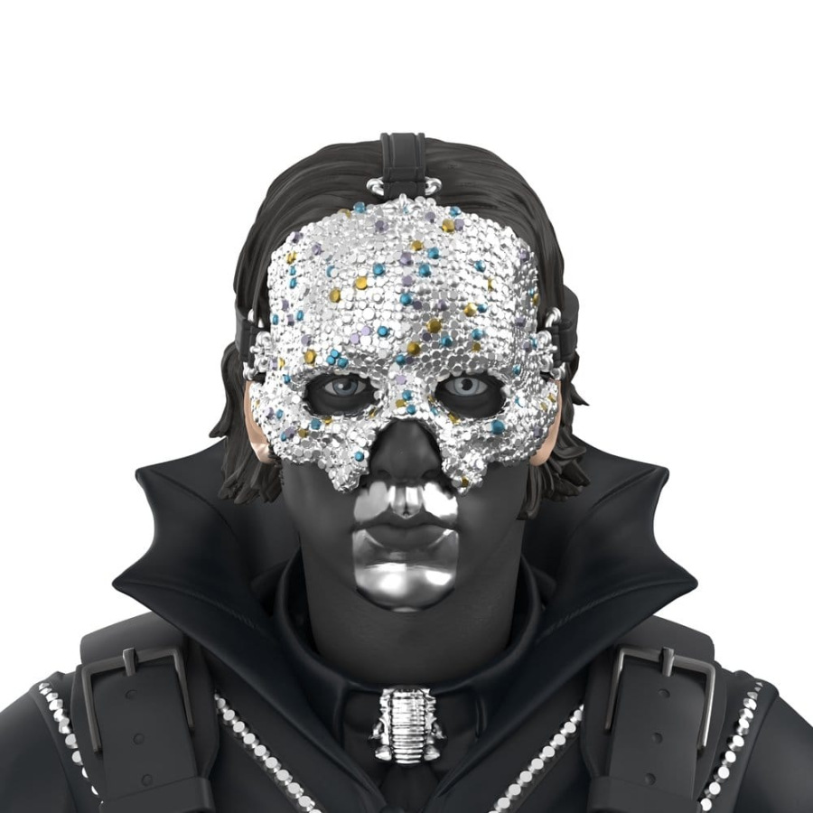 This Papa V Perpetua ULTIMATES! Figure is poised to haunt your music collection with a sweep of his wings. Inspired by the costume from the “Lachryma” music video, this 17,8 cm scale figure features 19 points of articulation, interchangeable heads and hands, bat wings, and a mic stand.