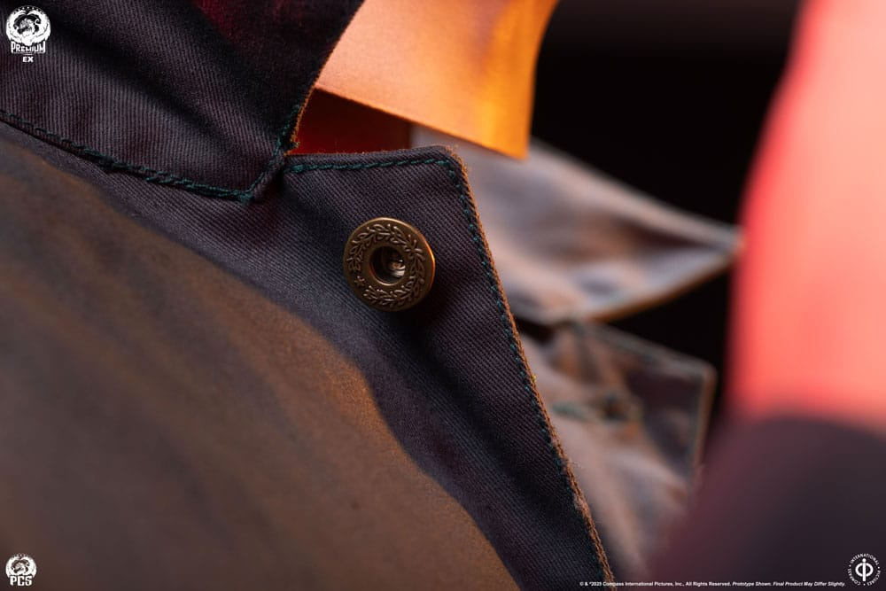 The Deluxe Edition boasts a full torso allowing Michael to clutch his signature knife in his hand adding an extra layer of terror to this life-sized collectible. This version is situated on a simple museum style base measuring roughly 13" wide and 9"deep.
