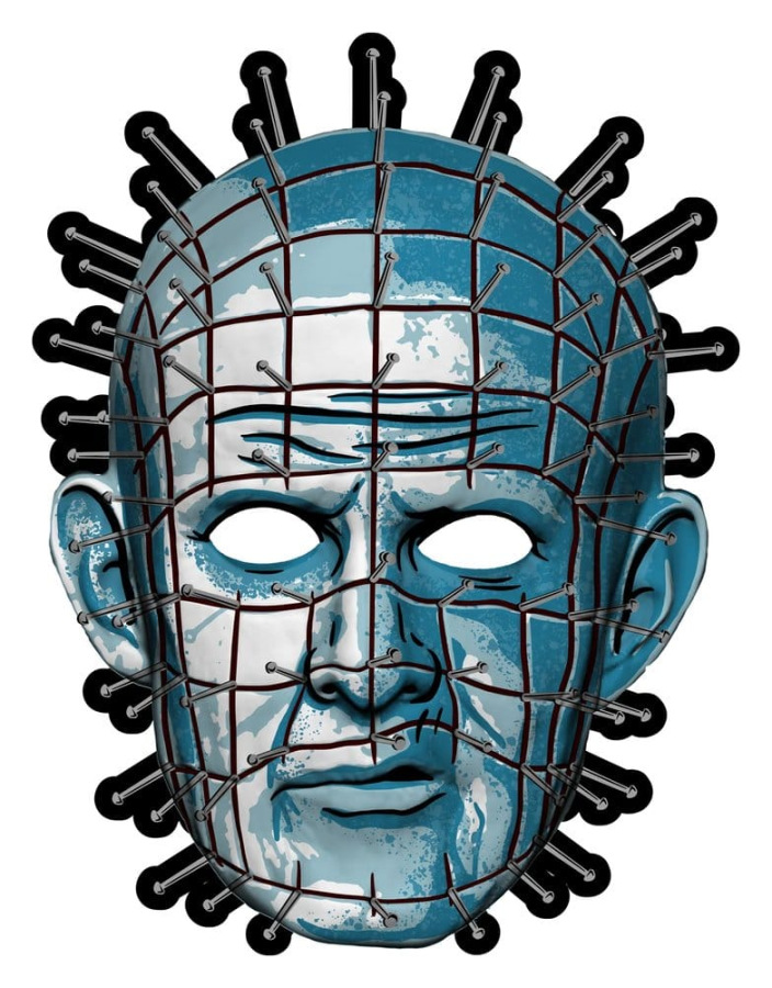 This lightweight vacuform mask showcases a screen-printed illustrated design with bold colors and stylized details that capture Pinhead's unmistakable look in retro fashion.