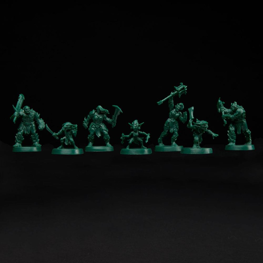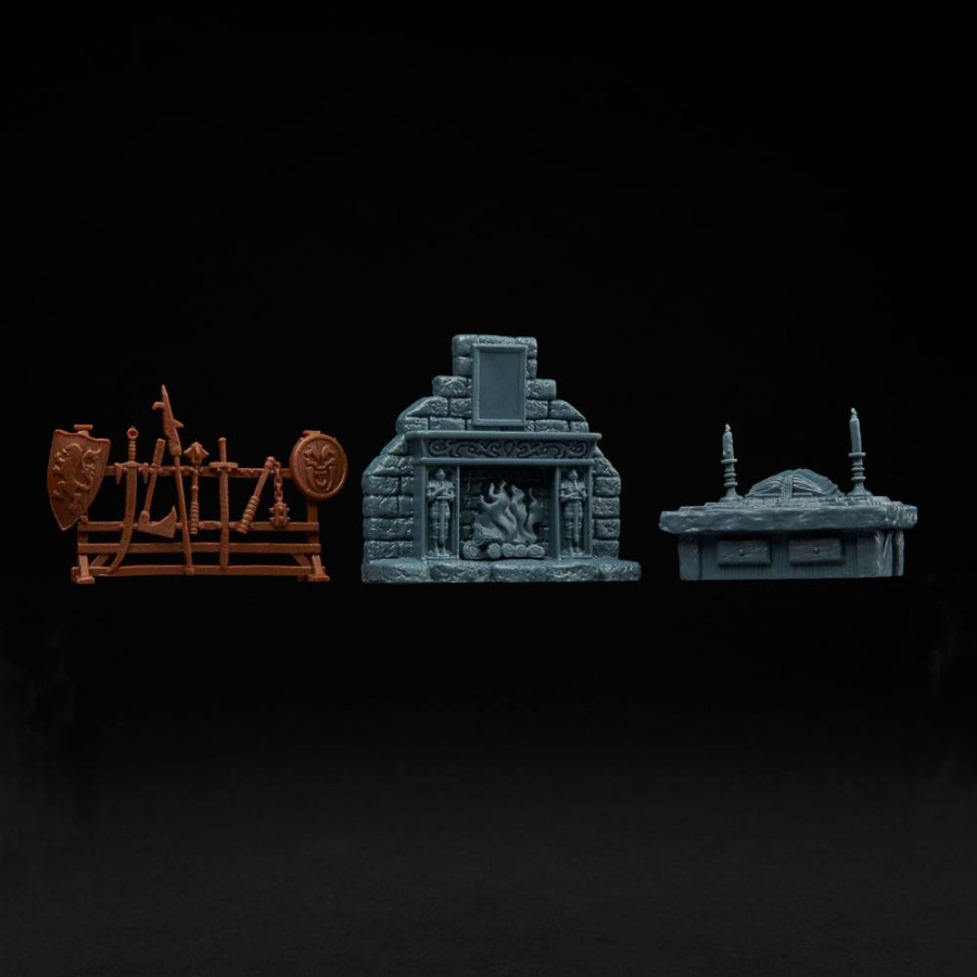 Includes gameboard, 31 monster miniatures, 4 hero miniatures, 15 furniture pieces, 10 skull pieces, 4 plastic rat pieces, 21 dungeon doors, 93 game cards, 4 turn-order cards, cardboard tiles, Quest Book, 4 character cards, Game Master's screen, pad of character sheets, 6 white combat dice, 2 red dice, and rulebook.
