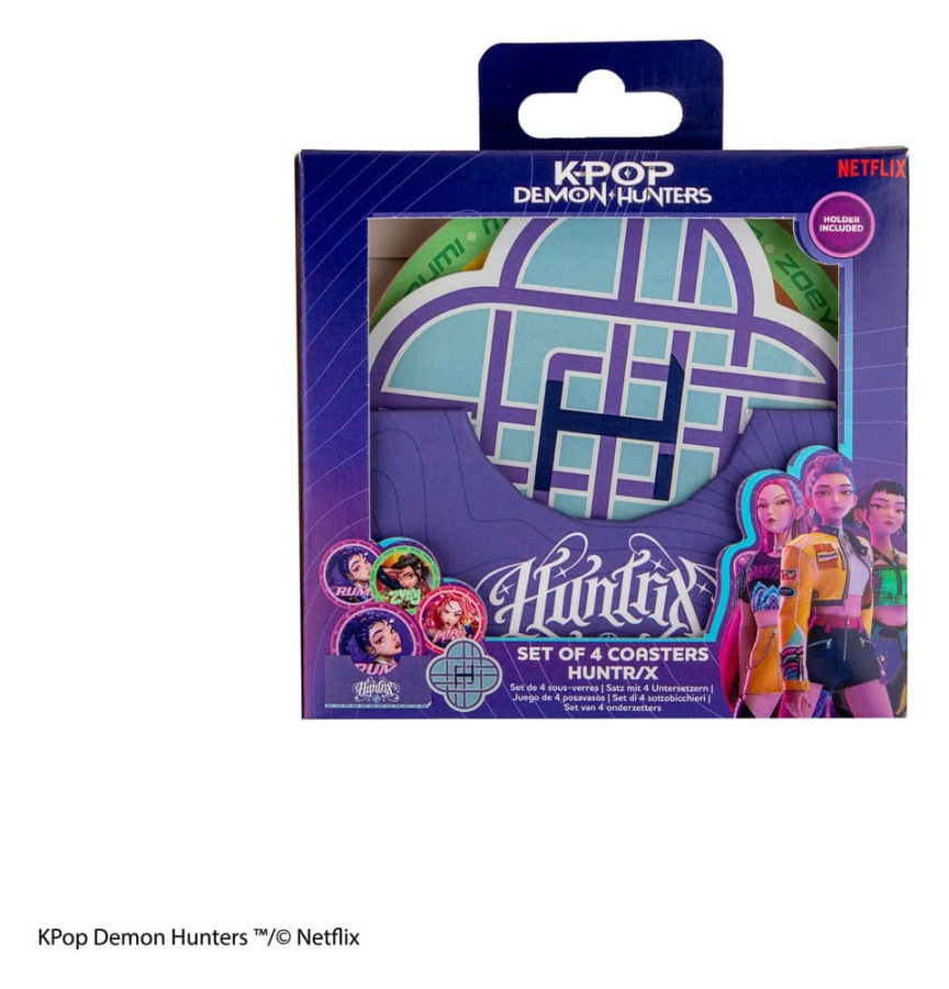 High quality Set of 4 Coasters from Cinereplica, licensed by KPop Demon Hunters. This product features HUNTR/X.
