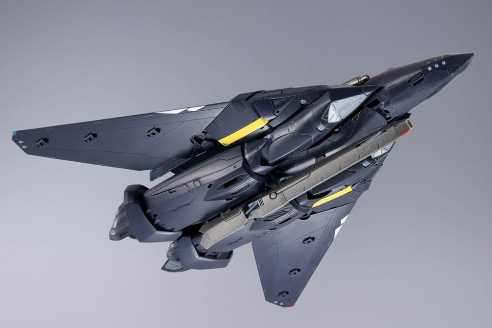 Introducing a stealth Valkyrie! The VF-17S is making its first appearance in DX Chogokin since its original broadcast. DX Chogokin is a 3D model based on its evolved form, the VF-171. True to its name, "Stealth Valkyrie," it recreates the slimness of its fighter form. Add this Macross 7 suit to your collection, following the VF-19 CUSTOM, due for release in October.