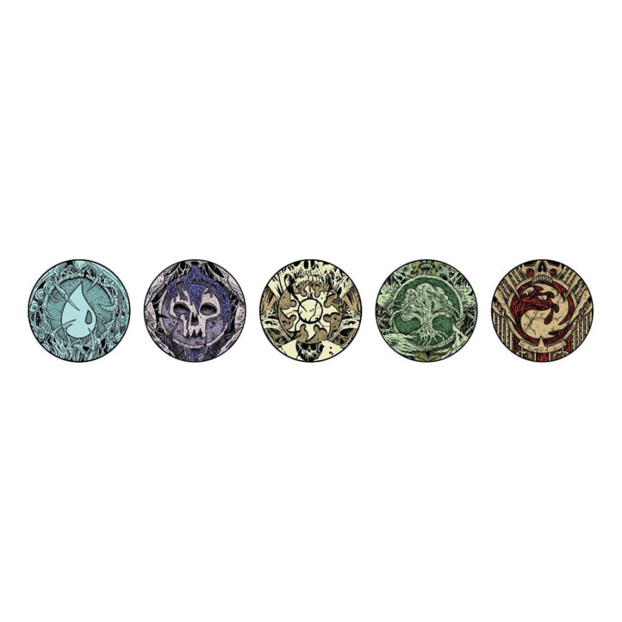 Collect the 5 different AR-Enhanced Pins in a Stained Glass Window Style. Celebrate your favorite mana in beautiful stained glasses stylization. These pins are based off the beautiful work by Magali Villeneuve.