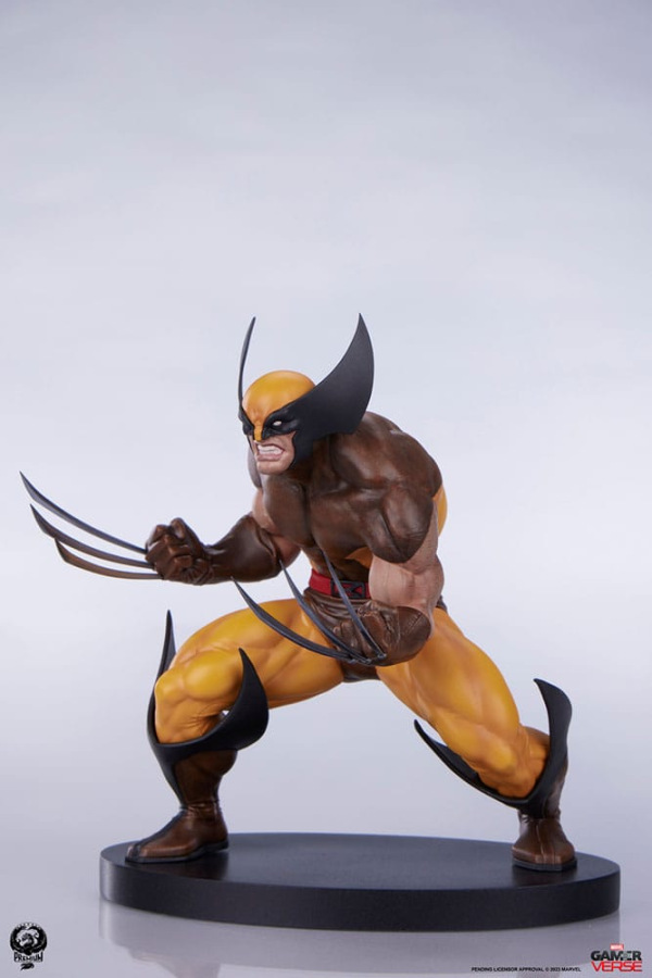 Canada's toughest mutant is claws up and ready to tear down any enemy in his classic brown and yellow suit. Unbreakable Adamantium claws project from his clenched fists as Wolverine crouches in a wide, firm stance. From the vivid costume color detailing to the metallic intricacy of his indestructible talons, every aspect is a testament to Wolverine's enduring legacy.