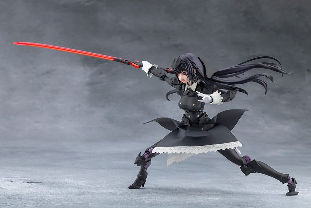 "To the audience, thrill and excitement." "To you, death.” The protagonist of Megalomaria Unlimited Universe, Maria Kagaribi, makes her marionnette style debut! This ambitious product is designed as the flagship of the Megalomaria series, featuring newly introduced soft skirt parts and a face with pre-painted movable eye parts alongside the newly developed hip joint mechanism, Maria Swing. Articulation Features: The model features more than 50 points of articulation throughout the body, and by including the Naked Face's movable eyes the total reaches an astounding 81 points. The model's long, beautiful hair includes a joint in each bundle, allowing flexible movement and creating a natural flow. The base of the hair also moves, meaning adjustment to angles suitable for action poses is also possible. The hip joints use the newly developed Maria Swing, allowing the left and right sides to move independently while still maintaining the natural, lifelike silhouette of a living character. The shoulders are composed of multiple joints enabling such poses as crossed arms or wielding a two-handed sword as the user desires. The sleeve parts use a newly developed structure that keeps them from interfering with wrist movement despite their simple design. Pre-painted Soft Material Skirt: The military gothic-themed skirt parts use an ultra-thin sheet material measuring less than 0.02cm, minimizing obstruction during action poses. The skirt consists of four parts painted on both sides and selectively printed with dimensional detailing to enhance texture. Light Equipment Mode: By removing the waist armor parts and taking off the skirt, the model can be changed into a light equipment mode that allows for even more acrobatic action poses. A dedicated light equipment mode detail cover is included to further enhance the appearance and allows a variety of poses that take advantage of the smooth hip line. Naked Face: As with Emulator, this kit includes movable eyes and a pre-painted face. The face part uses tampography and the eyes use UV printing, meaning a near-perfect finish can be achieved with assembly alone. The eyes can be adjusted to look different ways using the included tool. The irises have a glossy finish, contrasting with the inorganic Emulator. Two expressions are included, a standard face and a shouting face, and are interchangeable with face parts from kits such as Principal, Ruby Eye, and of course Sousai Shoujo Teien's Kuon Yakushiji. This kit uses Skin Color C. Masquerade Form: An inorganic mask part that conceals the face is included and is interchangeable with the Naked Face or Sousai Shojo Teien face parts.