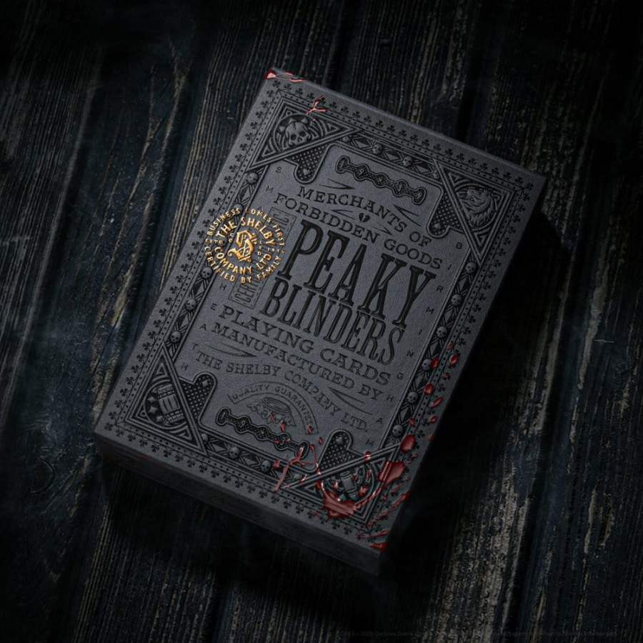 Play it like you mean it. A notorious gang in 1919 Birmingham, England, the Peaky Blinders are led by the fierce Tommy Shelby. The Shelby Company exclusively commissioned and designed this deck for players of refined character and ambition. Business Comes First courtesy of the shelby company LTD. Handle with discretion - each hand could be your last.