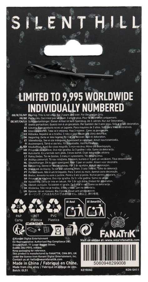 When James finds the map of the hotel on his visit to the town in search of Mary, "Waiting for you" is written on room 312, giving James hope that Mary is there, and that is also what is written on the back of this Lakeview Hotel keyring, which is made of metal and finished in red enamel, individually numbered and limited to 9,995 worldwide.