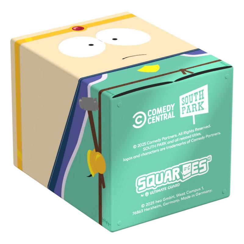 Collectible box for storing TCG decks, tabletop gaming accessories, and/or collectibles. Each Squaroe from the South Park™ edition holds up to 100 cards in double protective sleeves if used as a deck box. Squaroes are made from 78% renewable recources and fit perfectly into the separately available Collectors Case.