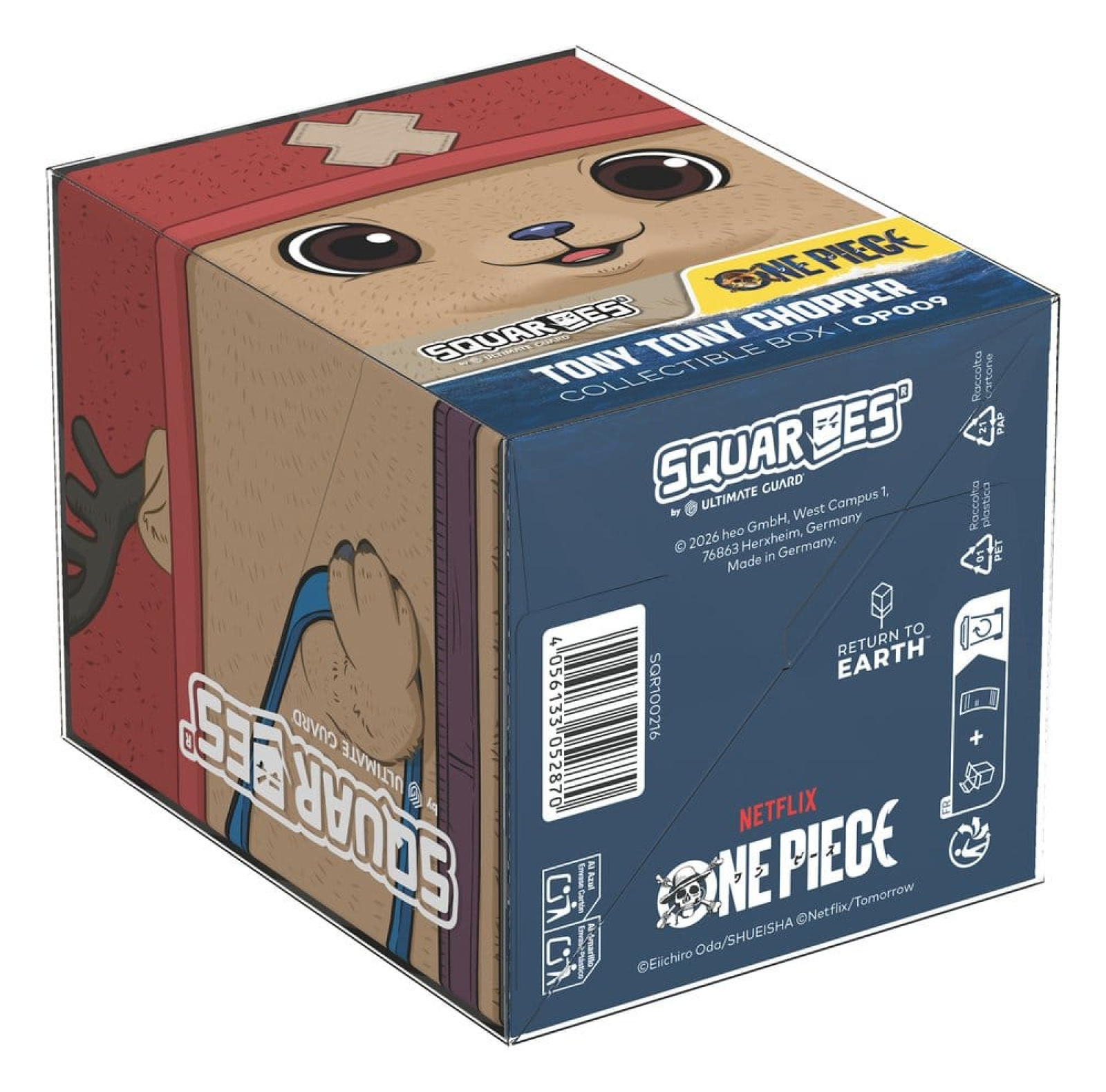 Squaroes by Ultimate Guard are the next generation of TCG gaming accessories! Crafted from high-quality, 78% sustainable materials they combine outstanding card protection with collectibility through exclusive designs, limited one-off printings, and deck boxes available in varying rarities. The ONE PIECE Squaroes hold up to 100 standard- or Japanese-sized trading cards (from games like Magic: The Gathering, Pokémon, Lorcana, Flesh and Blood, Yu-Gi-Oh!, Riftbound, and One Piece) in double protective sleeves*. As a new spin on Ultimate Guard's fan-favorite Boulder deck box, Squaroes offer an ultra-sturdy case with a secure closure, while staying easy and convenient to open.