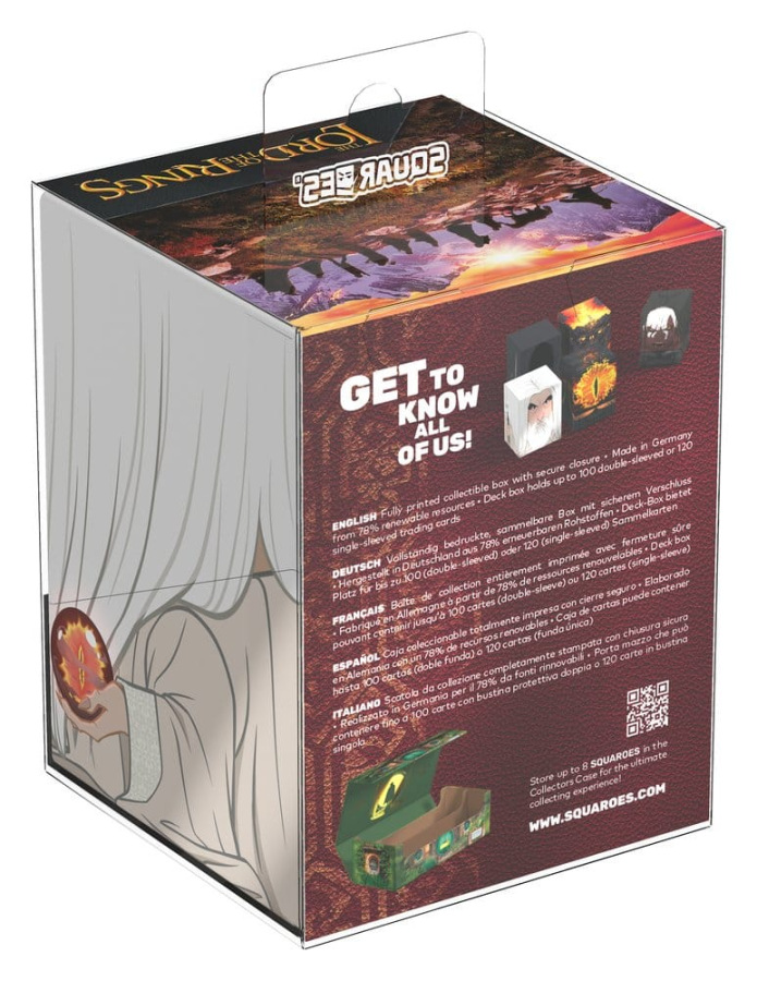 Squaroes by Ultimate Guard are the next generation of TCG gaming accessories! Crafted from high-quality, 78% sustainable materials they combine outstanding card protection with collectibility through exclusive designs, limited one-off printings, and deck boxes available in varying rarities. The The Lord of the Rings Squaroes hold up to 100 standard- or Japanese-sized trading cards (from games like Magic: The Gathering, Pokémon, Lorcana, Flesh and Blood, Yu-Gi-Oh!, Riftbound, and One Piece) in double protective sleeves*. As a new spin on Ultimate Guard's fan-favorite Boulder deck box, Squaroes offer an ultra-sturdy case with a secure closure, while staying easy and convenient to open.