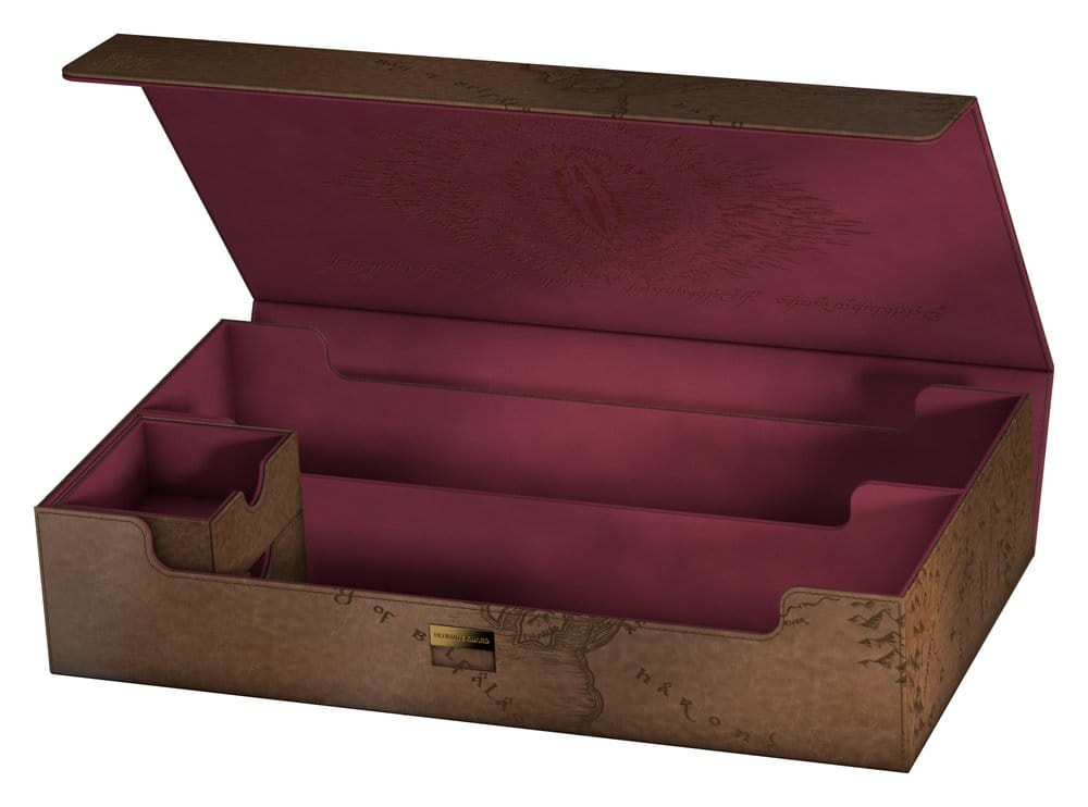 The Omnihive 1000+ is designed to hold multiple deck boxes, dice and/or play-mats at once with the help of two flexibly positioned magnetic trays. The deck case from Ultimate Guard's official The Lord of the Rings™ edition "Places of Middle-earth" is made of high-quality faux leather and is also the perfect choice for storing a larger collection of individual trading cards (up to 1000 double-sleeved). The Omnihive 1000+ Xenoskin's inside is made of elegant microfiber inner lining, while a strong magnetic closure with additional ZnapClaw mechanism ensures that cards and deck boxes are safe inside the box.