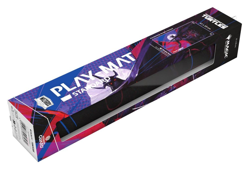 Ultimate Guard's Play-Mat Standard, featuring officially licensed artwork from the "Magic: The Gathering | Teenage Mutant Ninja Turtles" set, is a high-quality, 61 x 35 cm MTG playmat that enhances the gaming experience and protects MTG cards, sleeves, and accessories from scratches, wear, and dirt. The 2 mm thick, soft-cushioned playmat is made from natural rubber and features Ultimate Guard's trusted anti-slip underside and a high-quality, soft fabric surface. The gaming mat's stitched edges prevent fraying and ensure long-lasting durability.