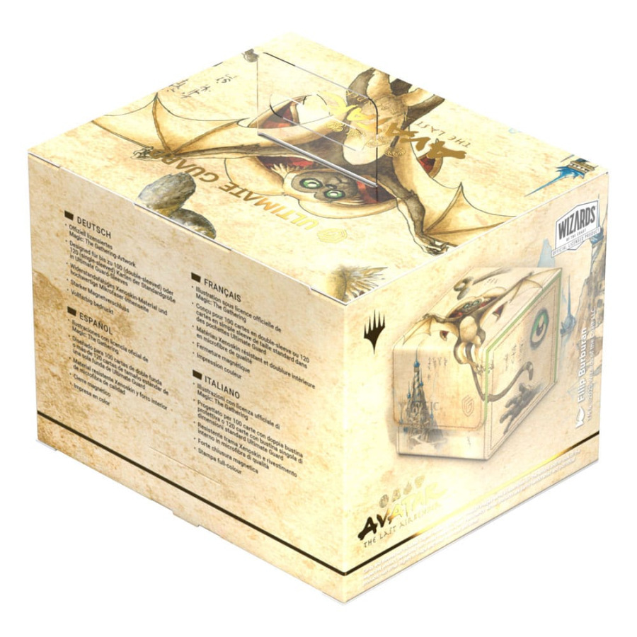 The Sidewinder 100+ made from durable Xenoskin material holds up to 100 double-sleeved cards, which are kept secure in the deck box thanks to a strong magnetic closure and soft microfiber inner lining. The durable, high-quality Xenoskin surface of the Sidewinder is printed in full color with officially licensed artwork from the Magic: The Gathering | Avatar: The Last Airbender set.