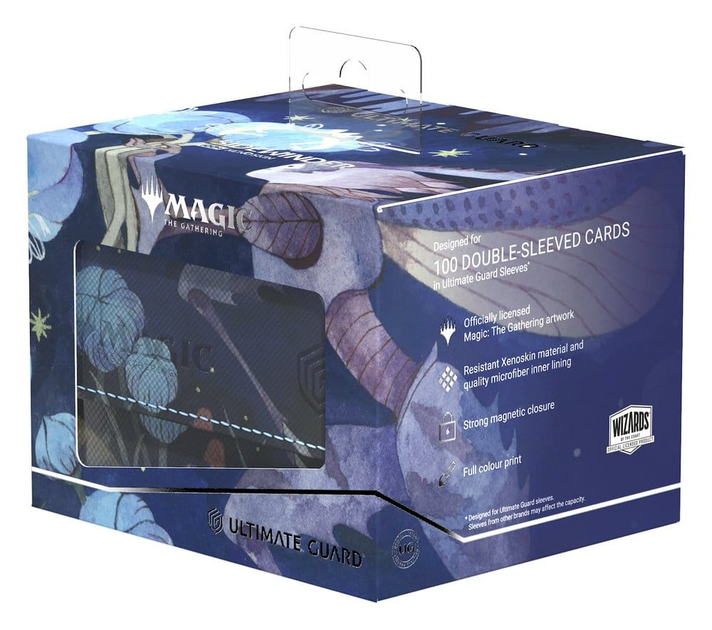 Ultimate Guard's Sidewinder 100+ Xenoskin is a premium Magic: The Gathering deck box offering exceptional card protection with its durable Xenoskin material, microfiber inner lining, and strong magnetic closure—all while providing easy and convenient access to the cards inside. With space for 100 double-sleeved cards in Ultimate Guard sleeves* and printed with officially licensed artwork from Magic: The Gathering's "Lorwyn Eclipsed" set, the Sidewinder 100+ Xenoskin is the perfect MTG deck box for all Magic formats (Commander/EDH, Modern, Standard, etc.). Designed to combine with Ultimate Guard's Omnihive, Superhive, and Smarthive mass storage boxes.The Sidewinder 100+ made from durable Xenoskin material holds up to 100 double-sleeved cards*, which are kept secure in the deck box thanks to a strong magnetic closure and soft microfiber inner lining. The durable, high-quality Xenoskin surface of the Sidewinder is printed in full color with officially licensed artwork from Magic: The Gathering's "Lorwyn Eclipsed" set.