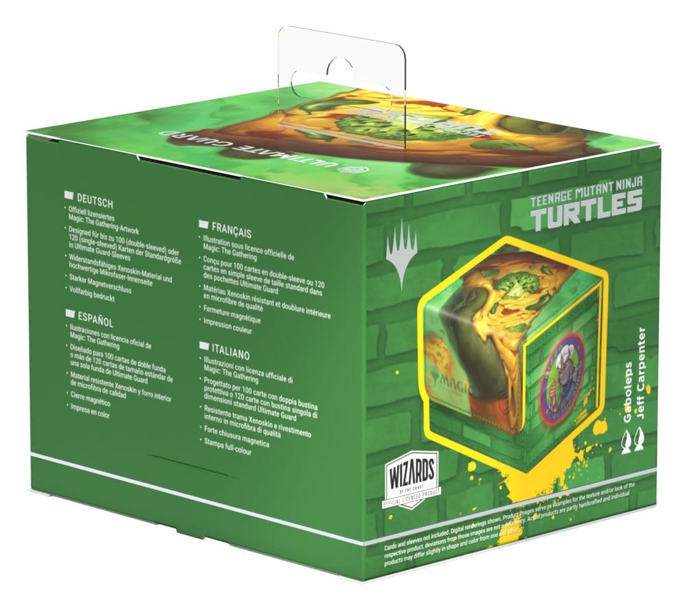 Ultimate Guard's Sidewinder 100+ Xenoskin is a premium Magic: The Gathering deck box offering exceptional card protection with its durable Xenoskin material, microfiber inner lining, and strong magnetic closure—all while providing easy and convenient access to the cards inside. With space for 100 double-sleeved cards in Ultimate Guard sleeves* and printed with officially licensed artwork from the "Magic: The Gathering | Teenage Mutant Ninja Turtles" set, the Sidewinder 100+ Xenoskin is the perfect MTG deck box for all Magic formats (Commander/EDH, Modern, Standard, etc.). Designed to combine with Ultimate Guard's Omnihive, Superhive, and Smarthive mass storage boxes.